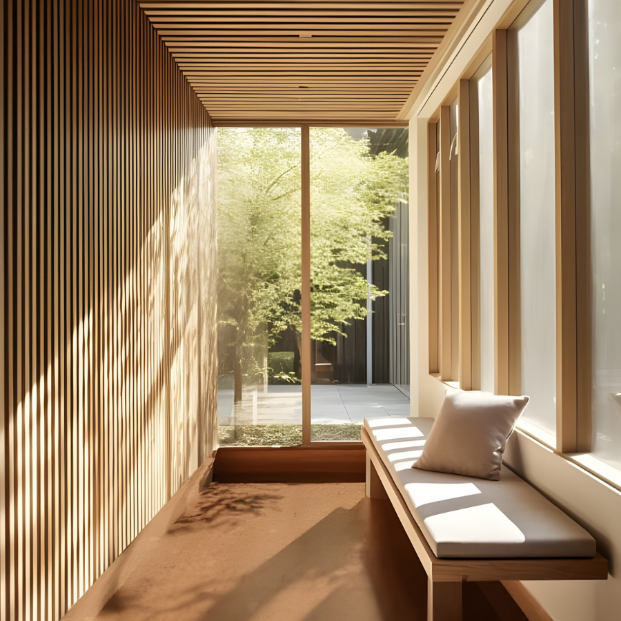 Sa structure cellulaire, composée majoritairement d’air, agit comme un régulateur naturel. Elle isole, absorbe, protège. Concrètement, cela se traduit par des ambiances plus tempérées, des acoustiques plus confortables, des espaces plus sains — que ce soit dans le tertiaire, l’hôtellerie ou le résidentiel.